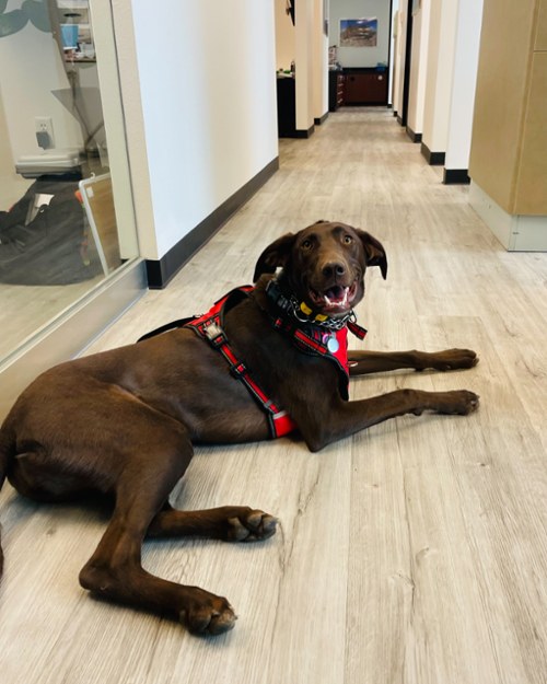 Mocha completed formal therapy-dog training and loves her job—whether she’s greeting patients in the lobby, offering soft snuggles during a procedure, or simply bringing joy to the office. Her favorite things include chin scratches, laying at your feet during treatment, and making nervous patients smile.